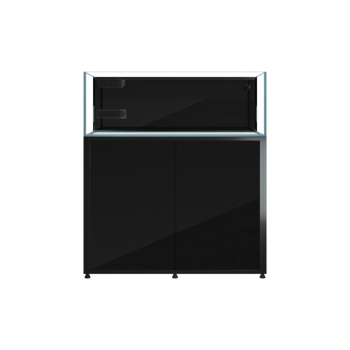Black rear glass panel neatly concealing the weir, ATO reservoir and all aquarium plumbing.