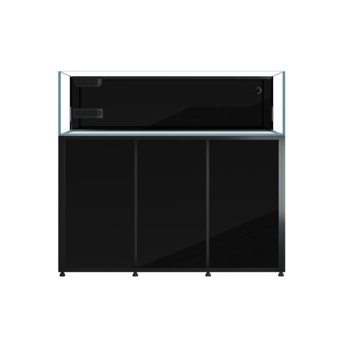 Black rear glass panel neatly concealing the weir, ATO reservoir and all aquarium plumbing.