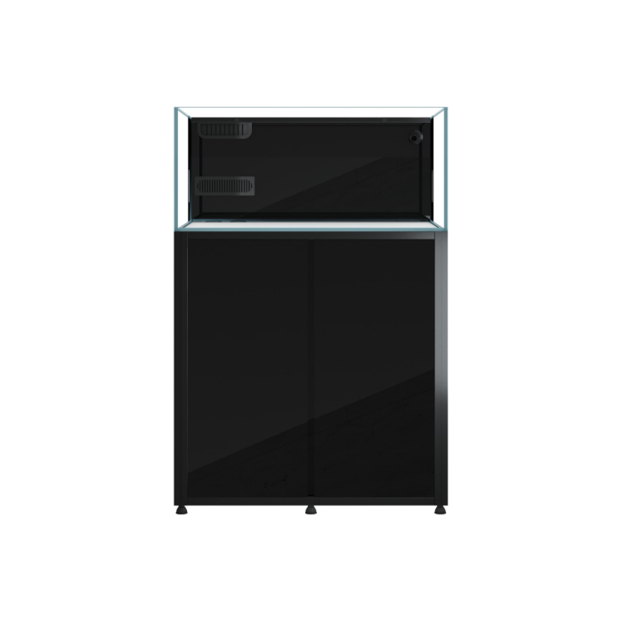 Black rear glass panel neatly concealing the weir, ATO reservoir and all aquarium plumbing.