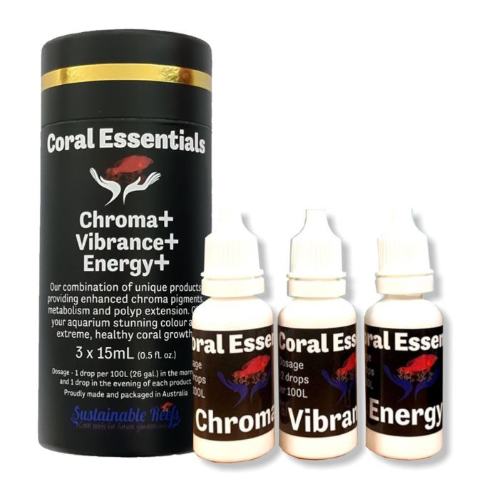 Want to try Chroma+ Vibrance+ and Energy+ aka "The Juice" black label products from coral essentials without the price tag, or have a smaller tank. This nano set of 3x15ml is perfect for you.