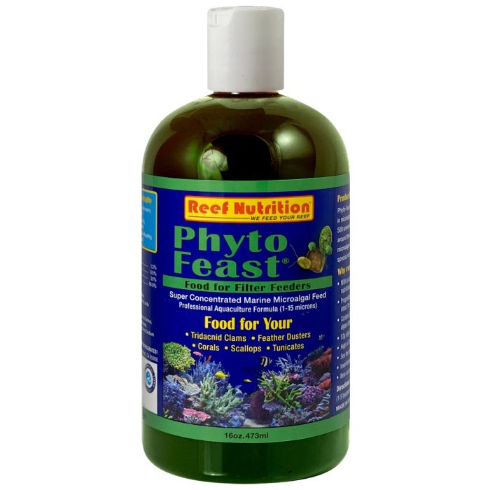 Provides a diversity of phyto-pigments, lipids, omega-3 fatty acids, amino acids, carbohydrates and cell sizes, just like Reef Nutrition’s Phyto-Feast Live®. Particle size 1-15 microns.